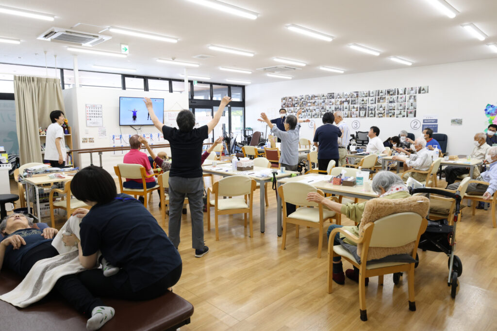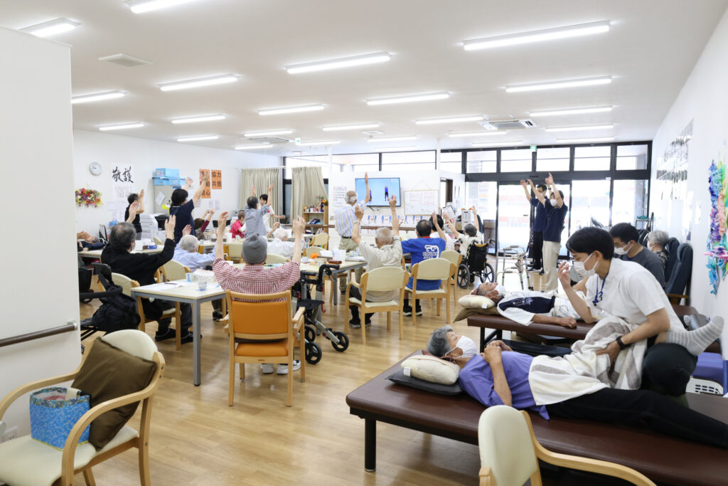 準備体操をしてからリハビリ、マッサージなどご利用者様のスケジュールに沿って進めていきます。