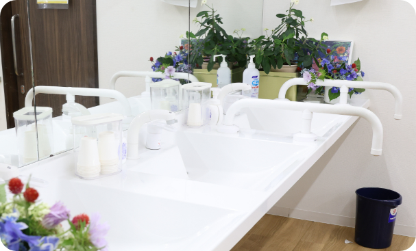 内装もお花を飾ったり、季節やイベントなどに合わせて飾りなどの装飾をしているので施設内でも四季折々の季節を感じて楽しんでいただけるように工夫しています。