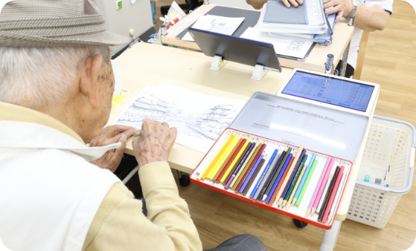 運動などの合間に、趣味の塗り絵や編み物、将棋、グランドゴルフの練習をして過ごされる方もいらっしゃいます。